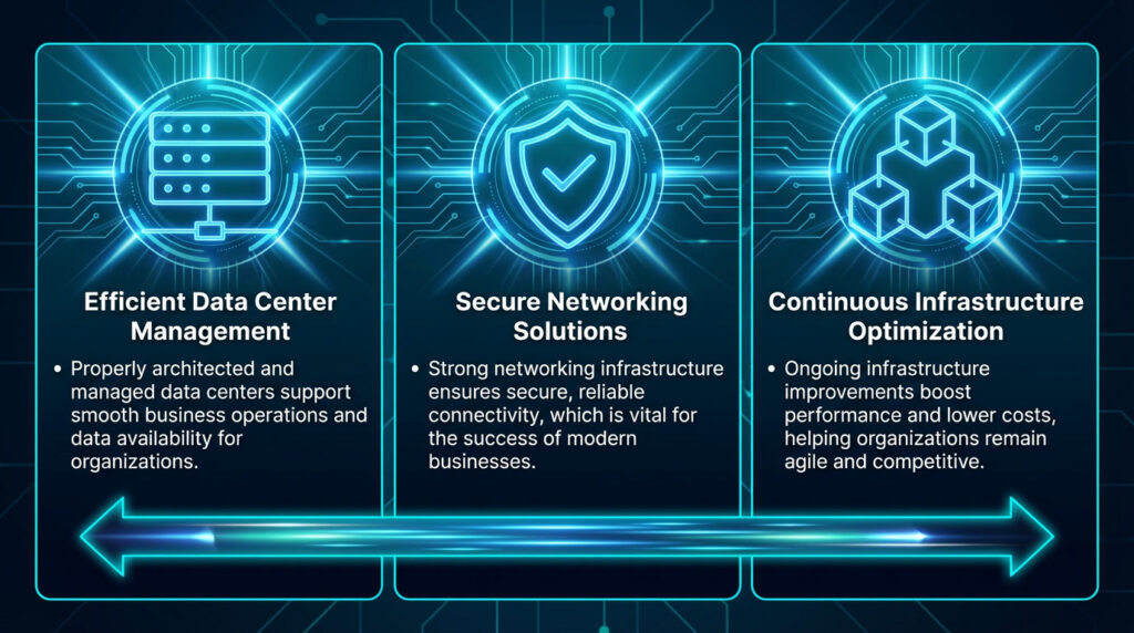 - Strong networking infrastructure ensures secure, reliable connectivity, which is vital for the success of modern businesses.
